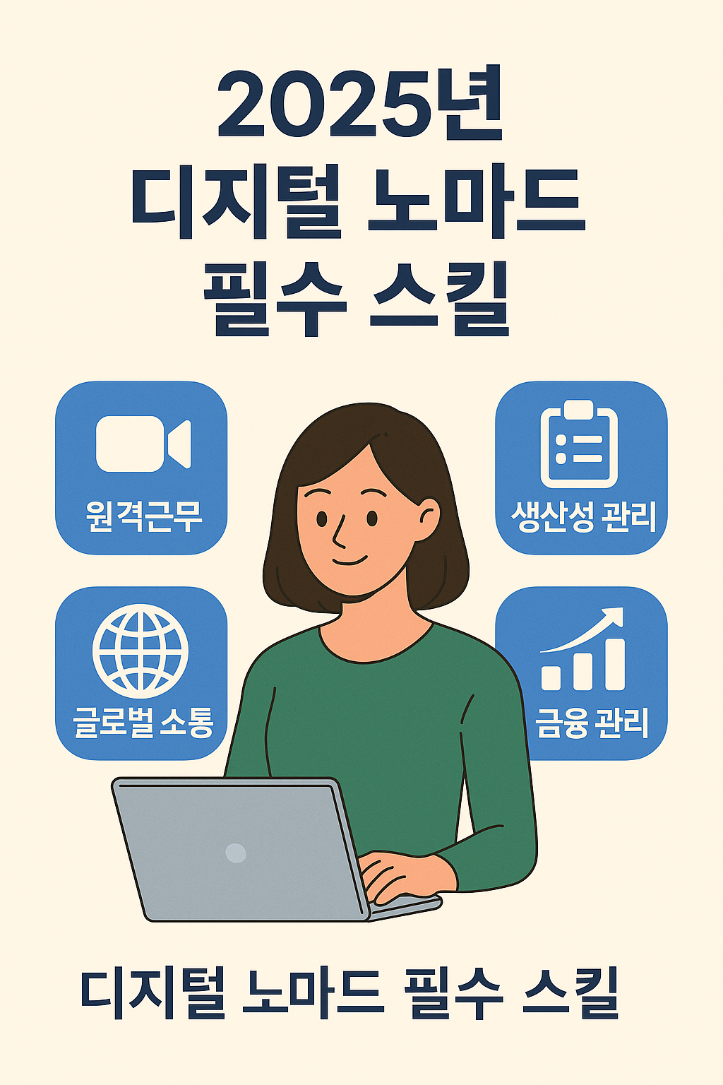 2025년 디지털 노마드로 성공하기 위해서는 단순한 원격근무 기술을 넘어, 자기 주도적 관리, 글로벌 커뮤니케이션, 재정 관리, 전문성 강화 등 다양한 역량이 필요합니다.